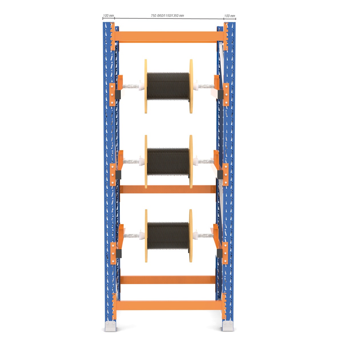 Lagerung für handelsübliche Kabeltrommeln, leichtes Abspulen der Kabel. Entweder in A-Form oder als gerade Regal erhältlich. Die gerade Variante eignet sich für die hängende Lagerung von schweren Kabeltrommeln, die schräge Variante ist für die Lagerung von leichten Kabeltrommeln geeignet.